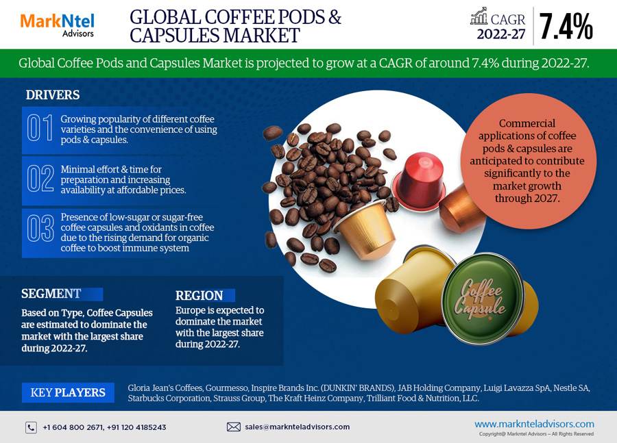 MarkNtel Advisors recently published a detailed industry analysis of the Coffee Pod & Capsule Market. The report covers growth trends, regional marketing strategies, challenges, opportunities, and drivers influencing the market.