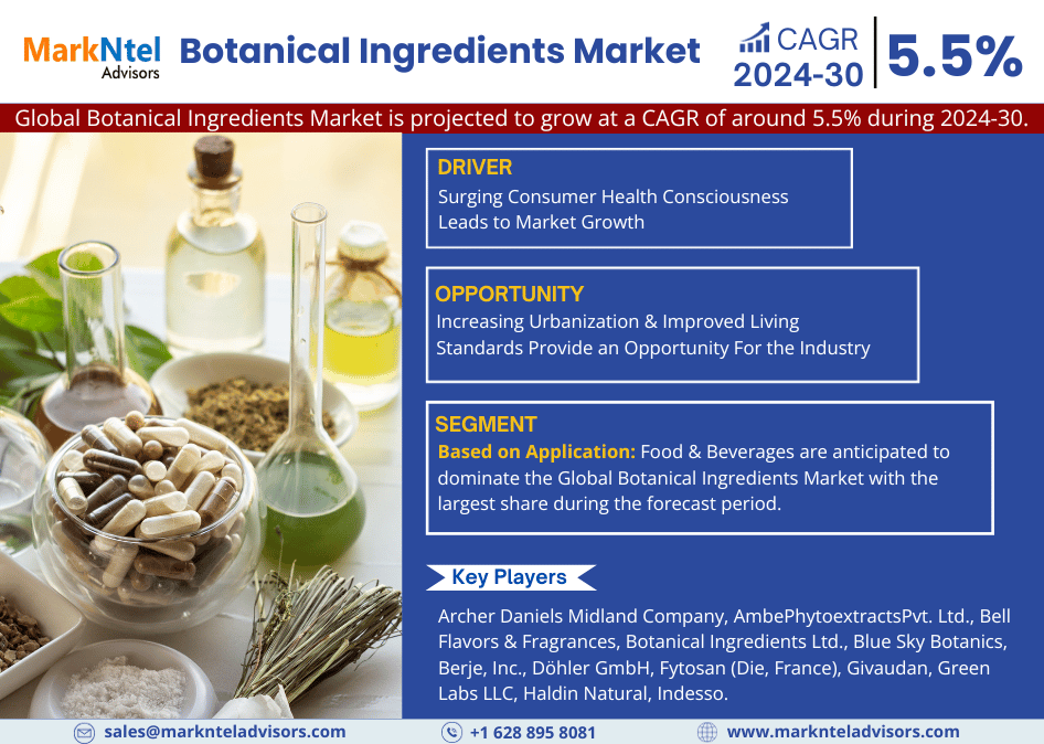 MarkNtel Advisors recently published a detailed industry analysis of the Botanical Ingredients Market. The report covers growth trends, geographical marketing strategies, challenges, opportunities, and drivers influencing the market.